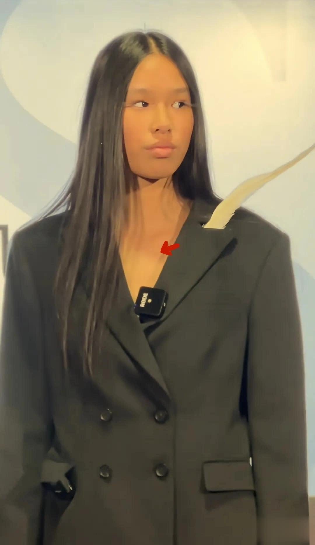 哇哦,15 岁的林家菱站在那,就像一棵挺拔的小白杨,身材高挑得很,身高优势简直不要太明显。不过她这皮肤有点黝黑,仔细瞅瞅领口,好像还有肤色差,难道是特意涂了深色粉底液,走个性路线?其实林家菱本身肤色就偏黑,嘿,这反而给她增添了几分神秘的独特韵味,就像一颗独特的黑珍珠。
