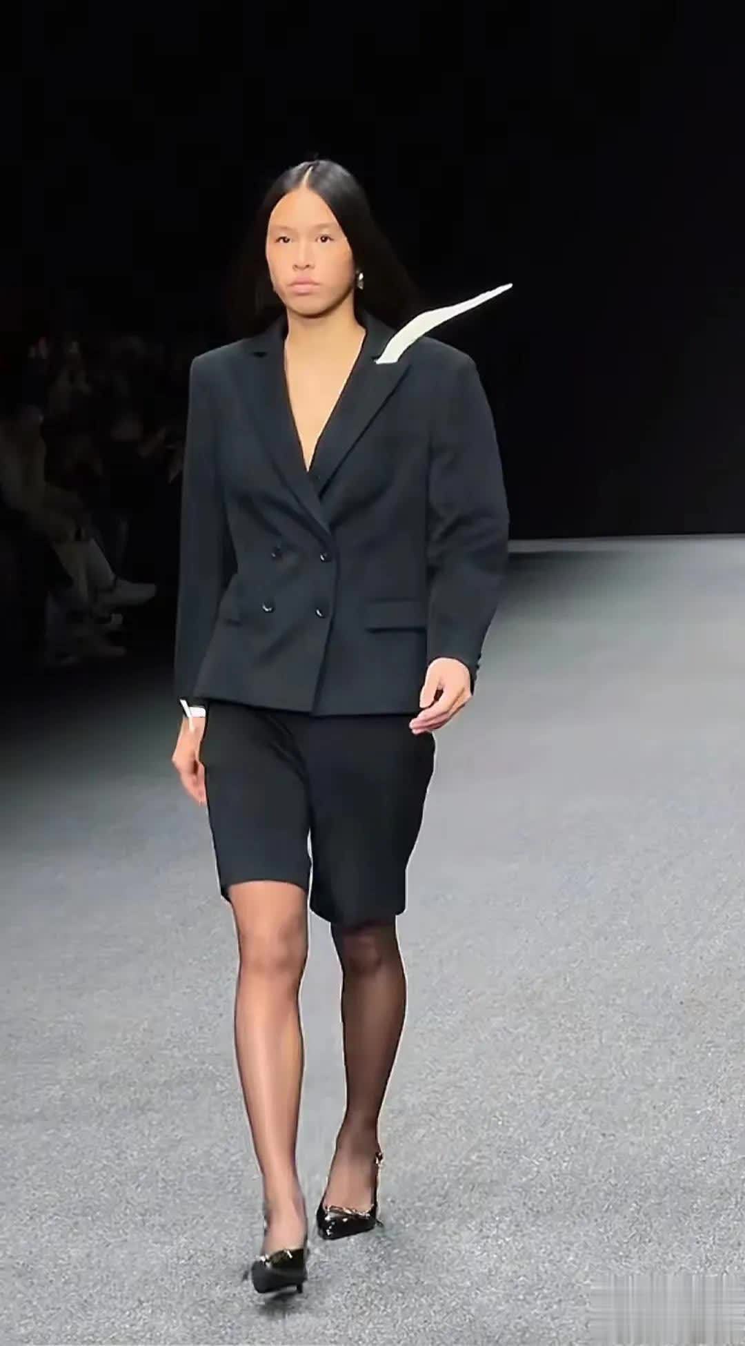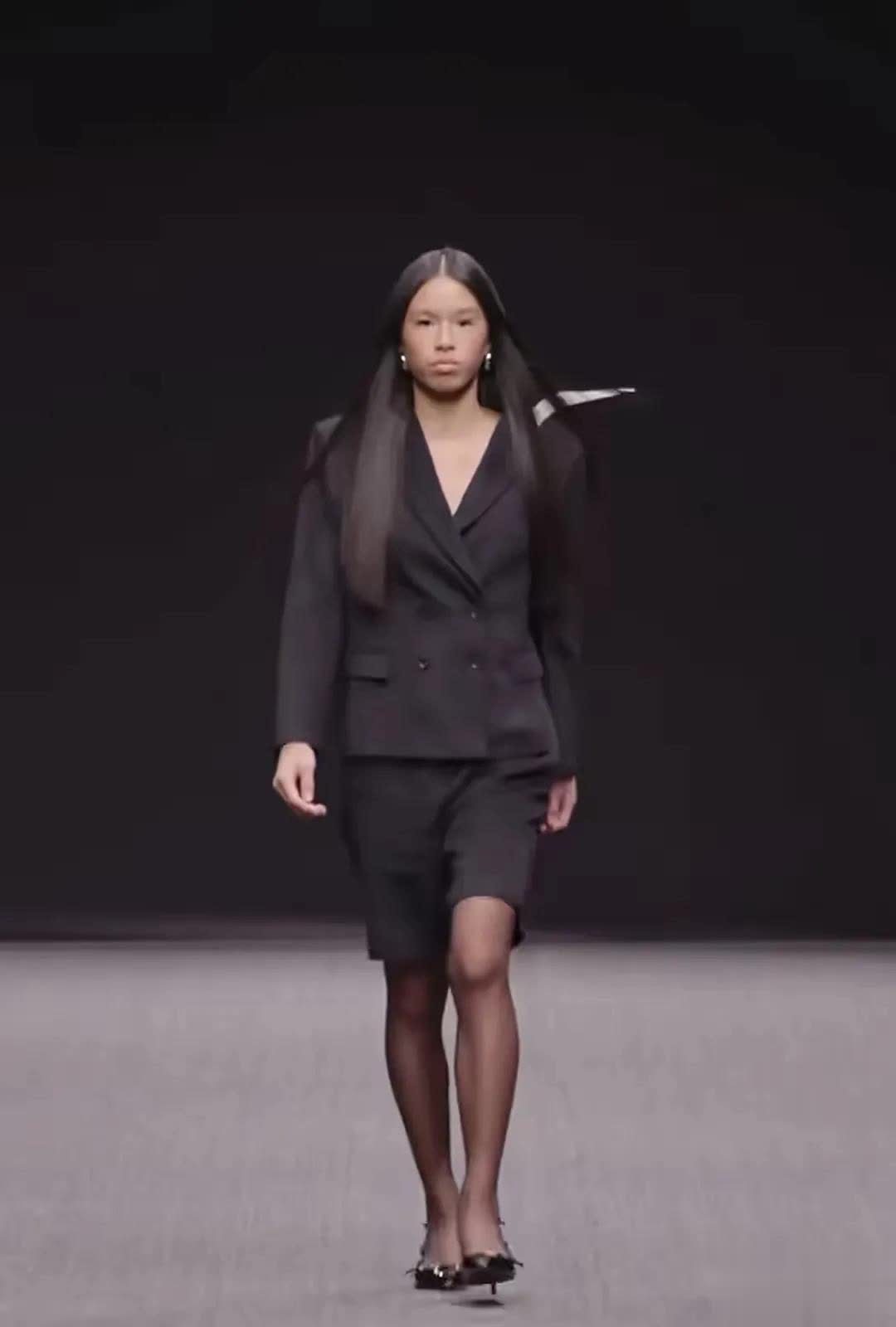 秀台上的林家菱,一身全黑的酷炫装扮,仿佛暗夜精灵。她走起秀来,台风稳健得像个经验丰富的老手,一步一步,从容不迫,自信大方得光芒四射,小小年纪就散发出满满的欧美范,嘿,还真有点混血黑美人的独特气质,让人忍不住多看几眼。